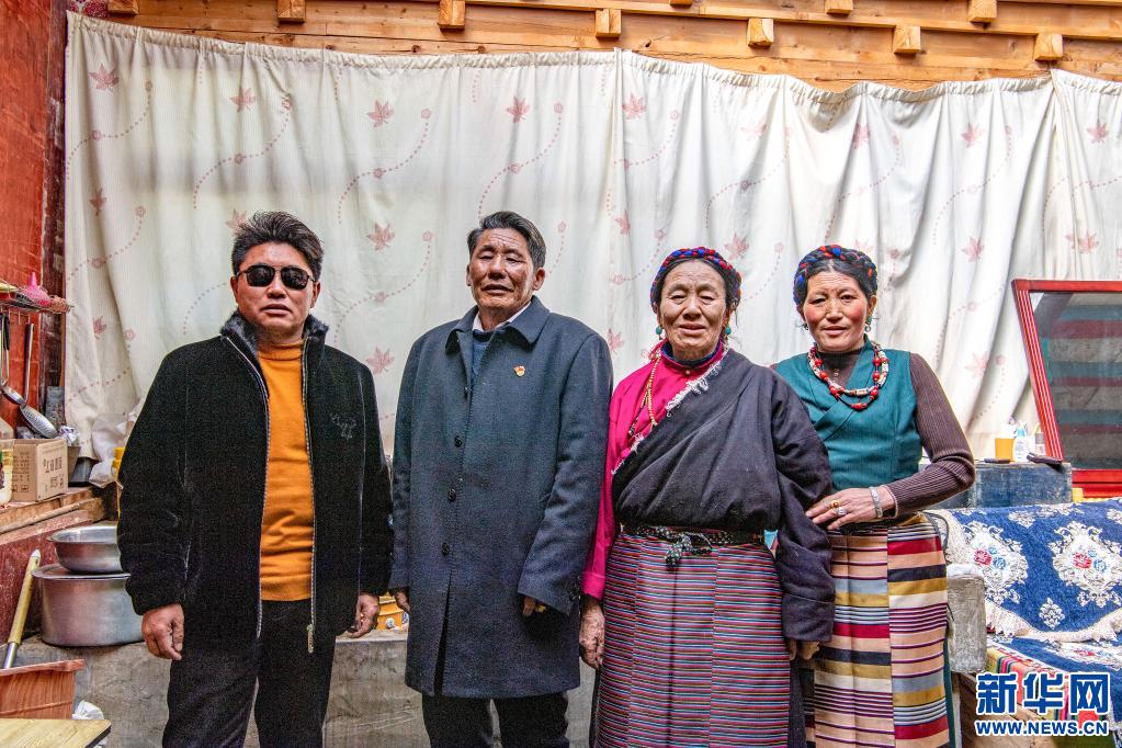 洛鬆朗加(左二)和家人合影(2月19日攝)。新華社記者 孫非 攝