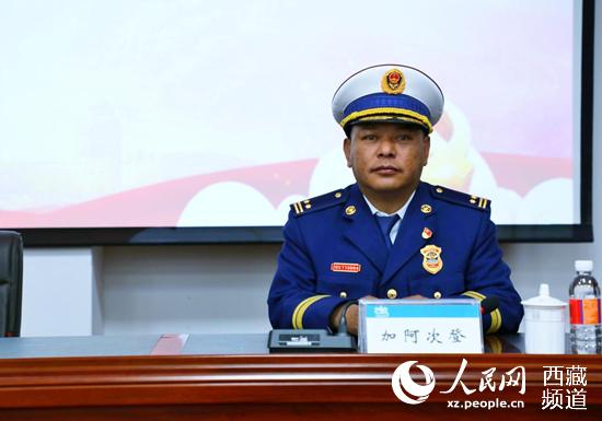 拉薩市消防救援支隊副支隊長加阿次登講話。人民網 李海霞攝