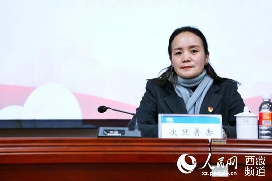 西藏自治區圖書(shu) 館館長次旦普赤講話。人民網 李海霞攝