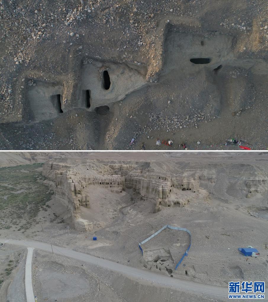 拚版照片:上圖為(wei) 西藏劄達桑達隆果墓地西區航拍,下圖為(wei) 西藏劄達桑達隆果墓地東(dong) 區航拍。(資料照片)新華社發