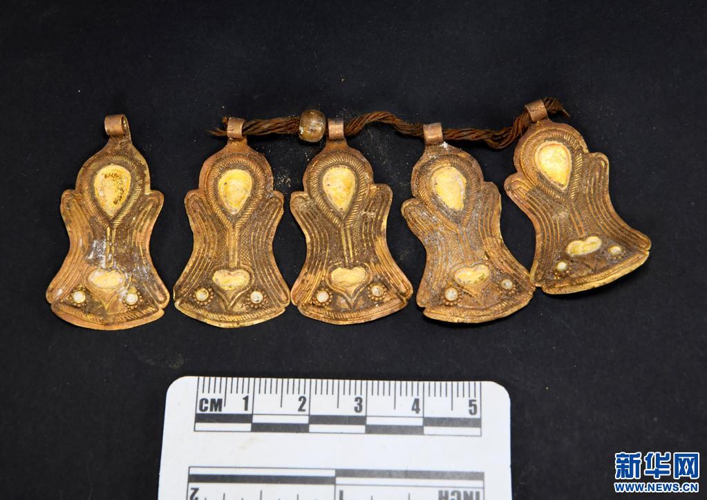 西藏劄達桑達隆果墓地出土的金掛飾。(資料照片)新華社發