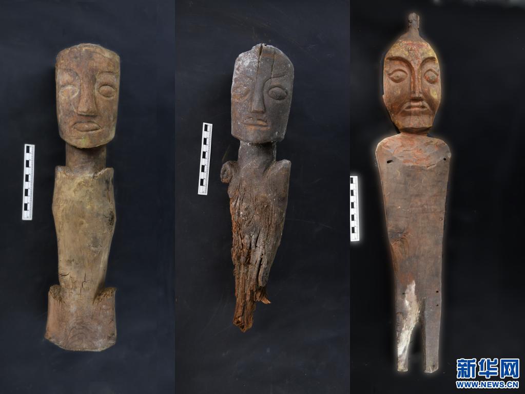 西藏劄達桑達隆果墓地出土的青藏高原木俑。(資料照片)新華社發