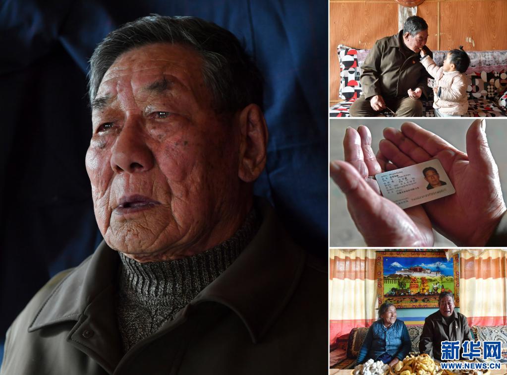 這是一張拚版照片,左圖為(wei) 多紮木的肖像(3月20日新華社記者張汝鋒攝);右上圖為(wei) 多紮木和兒(er) 子準備坐車外出(3月20日新華社記者孫瑞博攝);右中圖為(wei) 多紮木老人的身份證(3月20日新華社記者孫瑞博攝);右下圖為(wei) 多紮木(中)和兒(er) 子、兒(er) 媳在家中(3月20日新華社記者張汝鋒攝)。新華社發