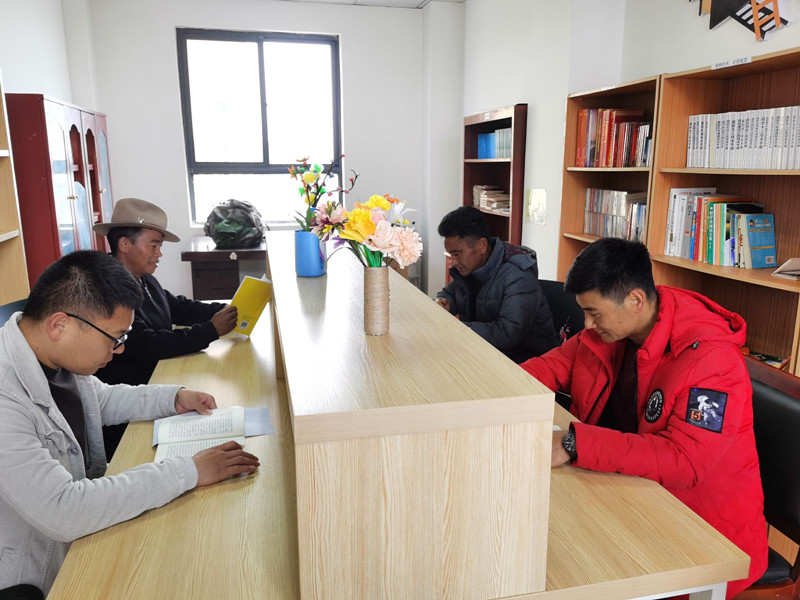 圖為(wei) 林芝市察隅縣下察隅鎮竹尼村村民在農(nong) 家書(shu) 屋閱讀書(shu) 籍。