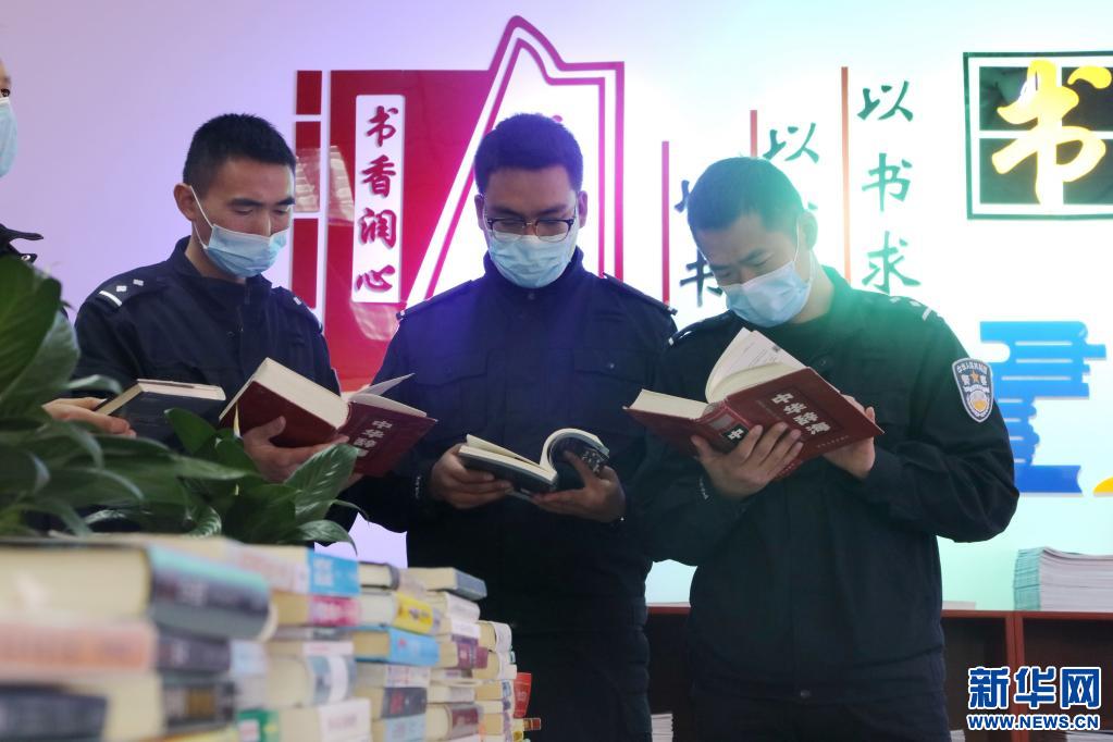 亞(ya) 東(dong) 出入境邊防檢查站民警在圖書(shu) 室借閱書(shu) 籍。(張雨強攝,新華社發)