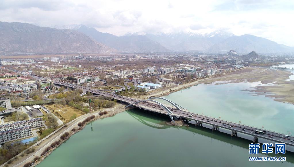 這是橫跨在拉薩河上的拉薩市區公路(2019年4月3日攝,無人機照片)。新華社記者 晉美多吉 攝