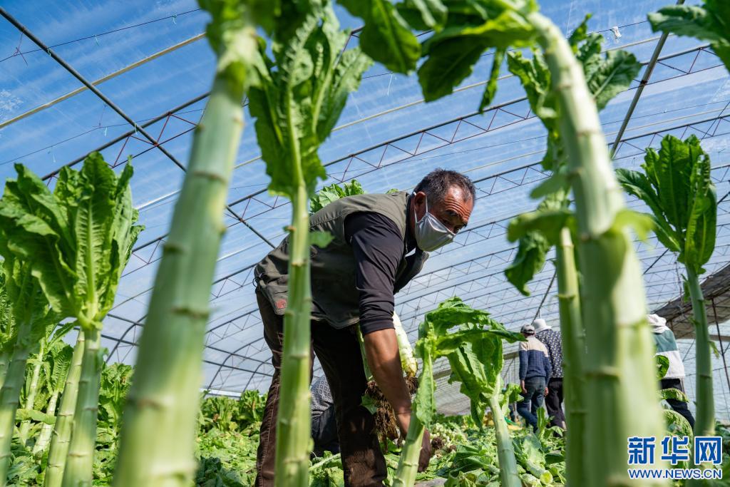 西藏曲水縣南木鄉(xiang) 江村的村民在大棚內(nei) 采摘蔬菜(2020年2月20日攝)。 新華社記者 普布紮西 攝