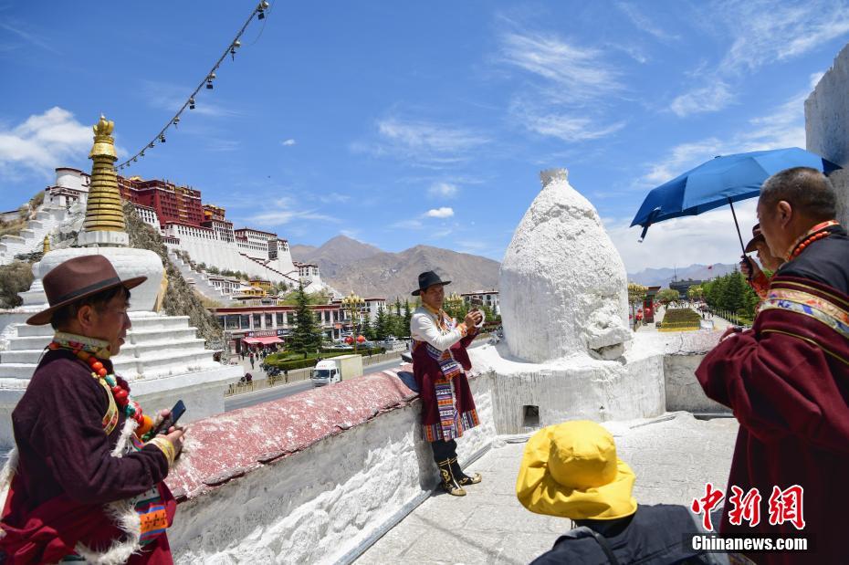 西藏官方發布數據顯示,2021年一季度,西藏接待國內(nei) 外遊客171萬(wan) 人次,同比增長2.4倍,實現旅遊收入13.78億(yi) 元人民幣,增長3.1倍。“五一”假期將至,在拉薩布達拉宮、八廓街等地可以看到,身著藏族傳(chuan) 統服飾拍照留念的遊客絡繹不絕,西藏旅遊預計將迎來小高潮。圖為(wei) 4月29日,藍天白雲(yun) 映襯下的布達拉宮。中新社發 貢嘎來鬆 攝