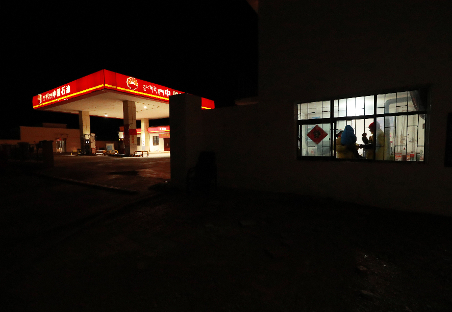 晚上11時許,雙湖縣城大多數店鋪已打烊關(guan) 門,街上更是冷冷清清,但在加油站依然能看到工作人員忙碌的情景。