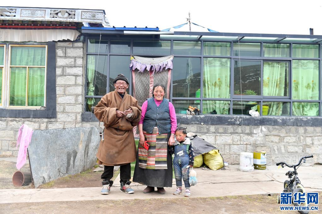 索朗多傑老人和家人在院子裏合影(4月15日攝)。新華社記者 孫瑞博 攝