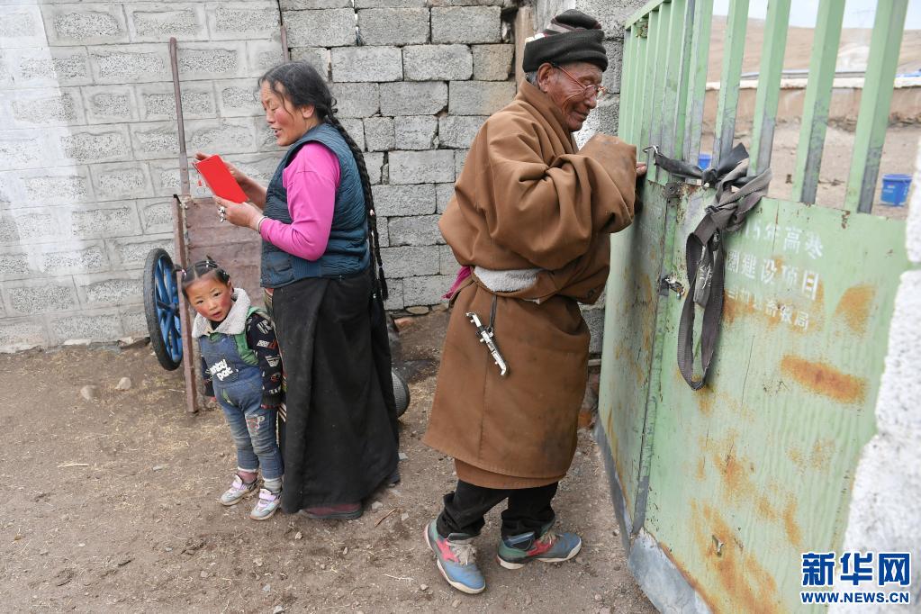 索朗多傑在關(guan) 自家牲圈的門(4月15日攝)。新華社記者 孫瑞博 攝