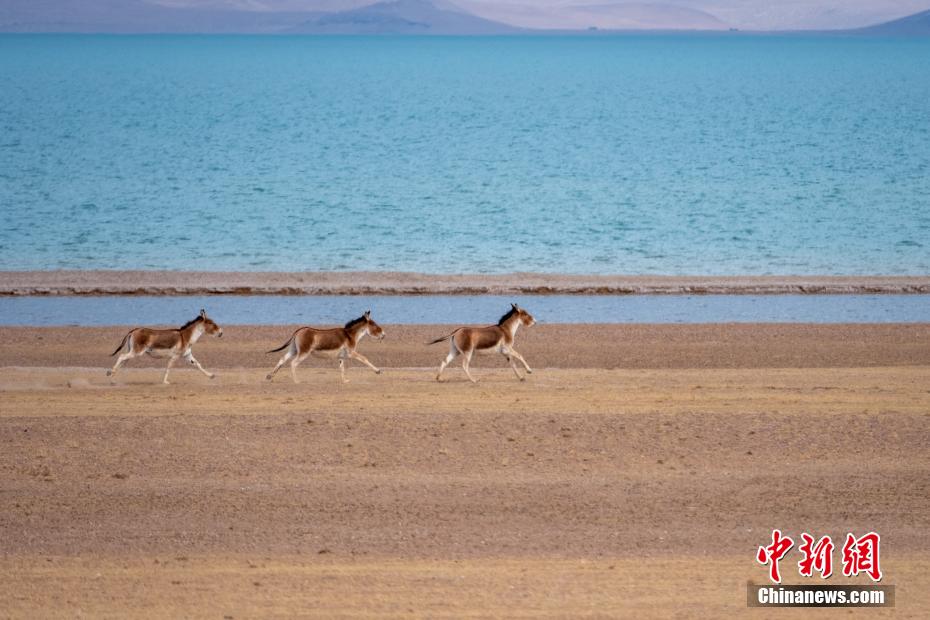 圖為(wei) 5月2日,西藏色林錯湖邊三頭藏野驢在撒歡奔跑。江飛波 攝