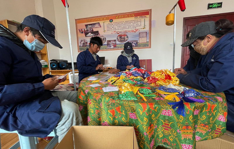 圖為(wei) 洛隆縣嘉薩藏香製作廠的工作人員在製作藏香包。記者 次旺 唐斌 攝