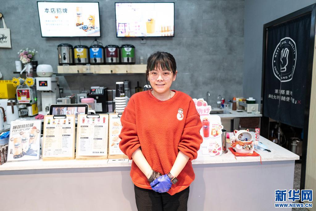 澳門姑娘邵穎怡站在自己位於(yu) 拉薩的奶茶店裏(5月6日攝)。新華社記者 孫瑞博 攝
