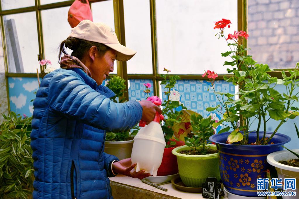 拉巴在新房內(nei) 澆花(2020年10月14日攝)。新華社記者 田金文 攝