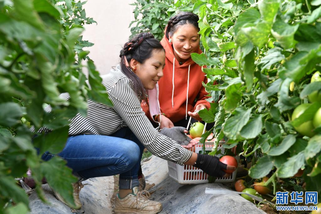 工作人員在西藏阿裏噶爾縣生態農(nong) 業(ye) 產(chan) 業(ye) 園采摘西紅柿(2018年8月1日攝)。新華社記者張汝鋒 攝