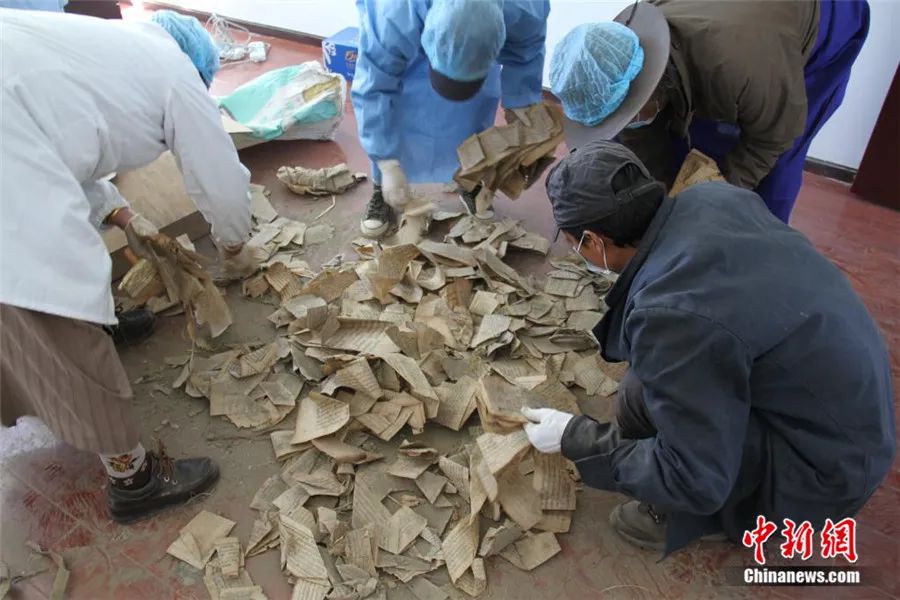 挖掘工作持續了3天才結束。由於(yu) 當時寺院條件簡陋,古籍散葉被臨(lin) 時裝入編織袋中,足足裝滿了68袋。