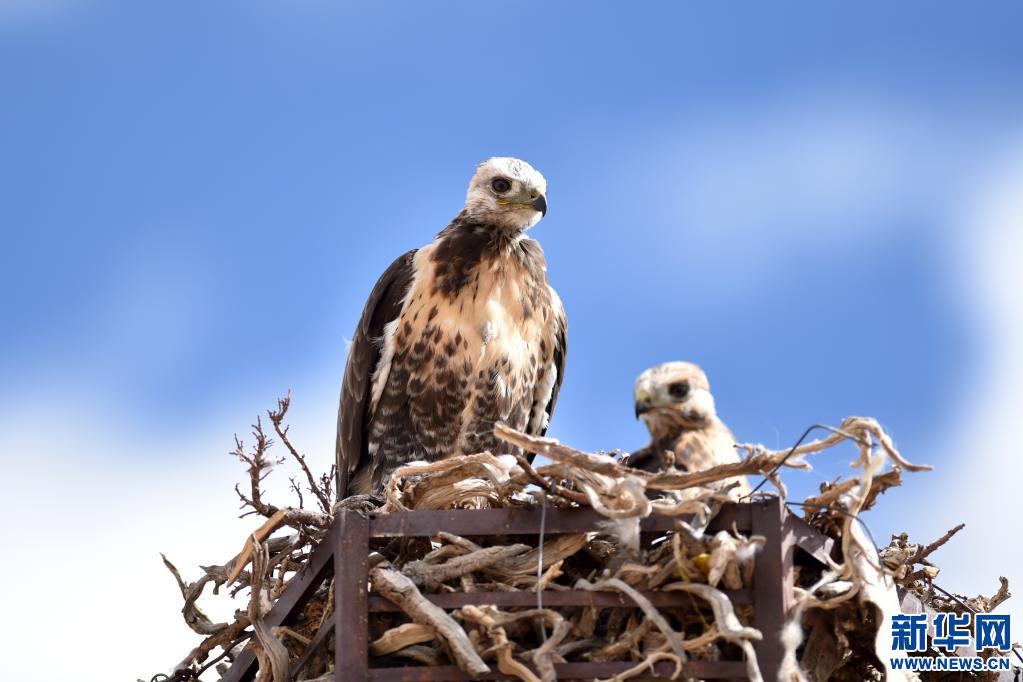 金雕在人工築的鷹架上棲息。(新華社記者 覺果 攝)