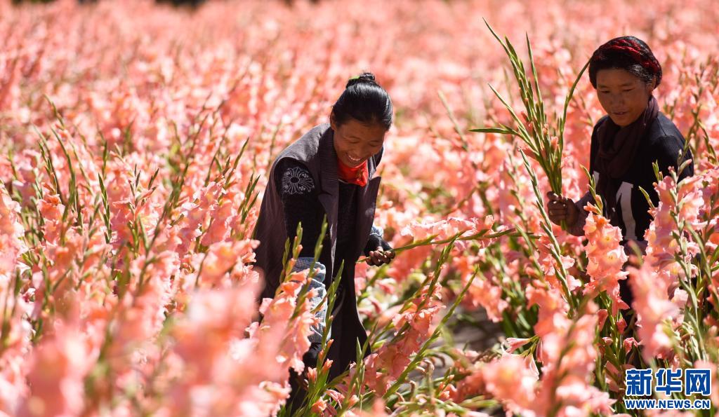 近年來,西藏拉薩市曲水縣才納鄉(xiang) 種植試驗基地試種薰衣草、馬鞭草、鼠尾草及各類藥材,成為(wei) 拉薩市最大的“經濟花園”。2017年10月7日,拉薩市曲水縣才納鄉(xiang) 村民旦增卓嘎(左)和貢桑(右)在基地裏采摘作物。新華社記者 普布紮西 攝