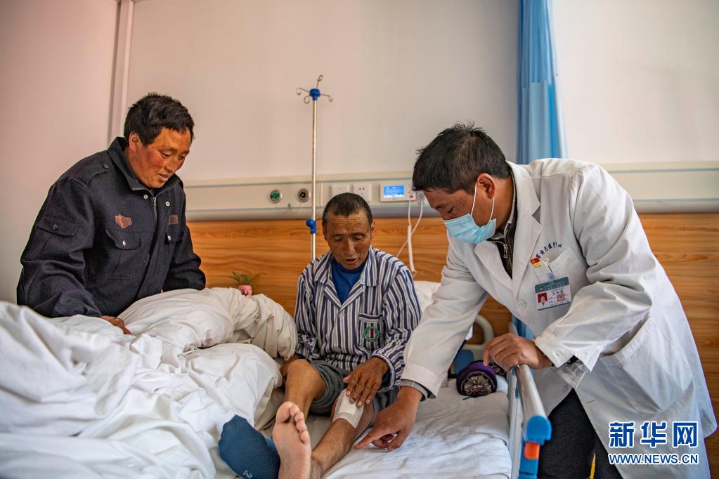 在西藏昌都市八宿縣人民醫院,醫生給剛接受了膝關(guan) 節置換手術的患者做檢查(3月29日攝)。新華社記者 孫非 攝
