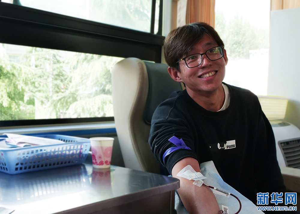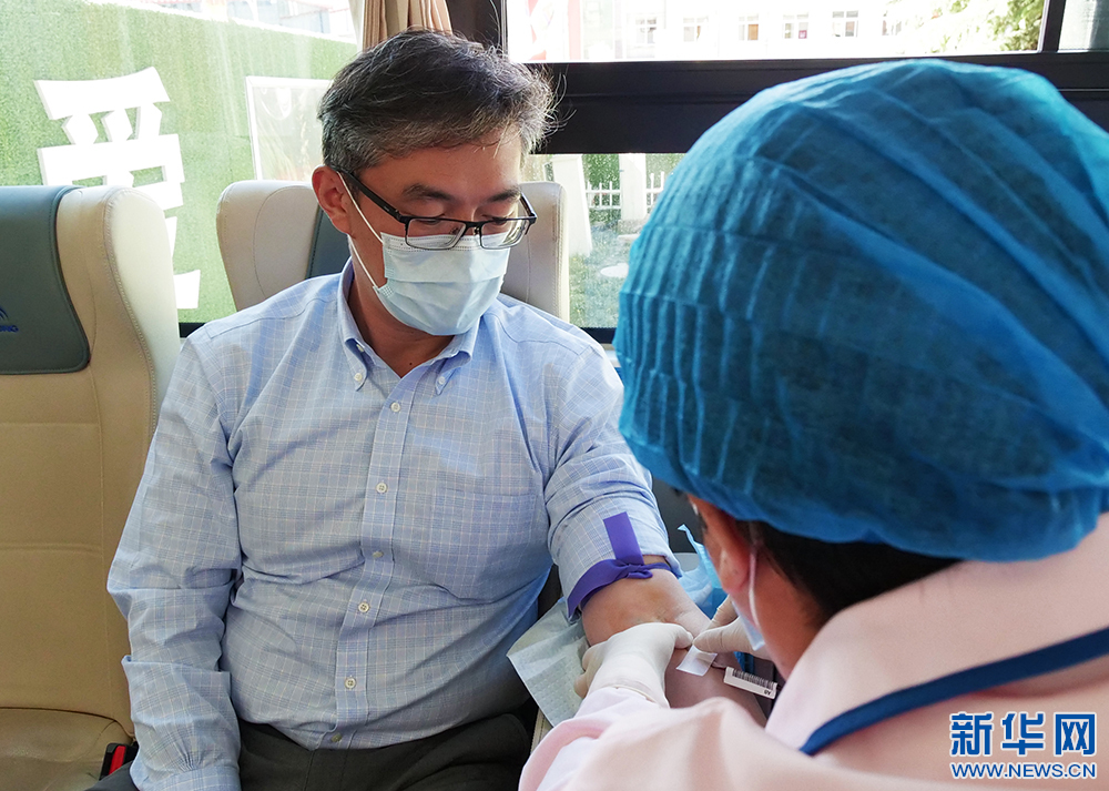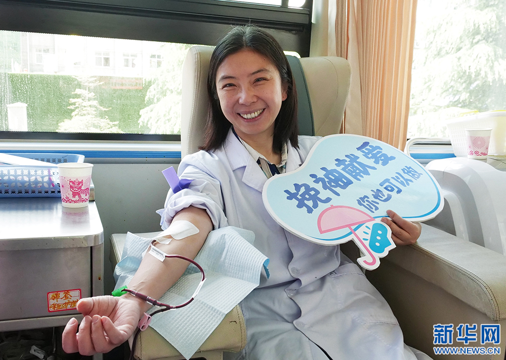5月27日,來自北京協和醫院的援藏專(zhuan) 家楊筱在獻血。(新華網 旦增努布攝)