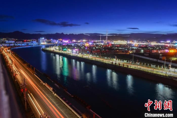 圖為(wei) 西藏阿裏地區獅泉河鎮入夜,華燈初上。2020年12月,隨著大電網電的接入,阿裏地區從(cong) 此告別缺電。 江飛波 攝