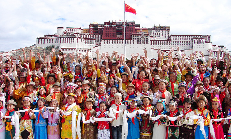 圖為(wei) 拉薩市第一小學60年校慶時,全校學生盛裝在布達拉宮廣場合影留念。(資料圖片) 記者 旦增西旦 攝