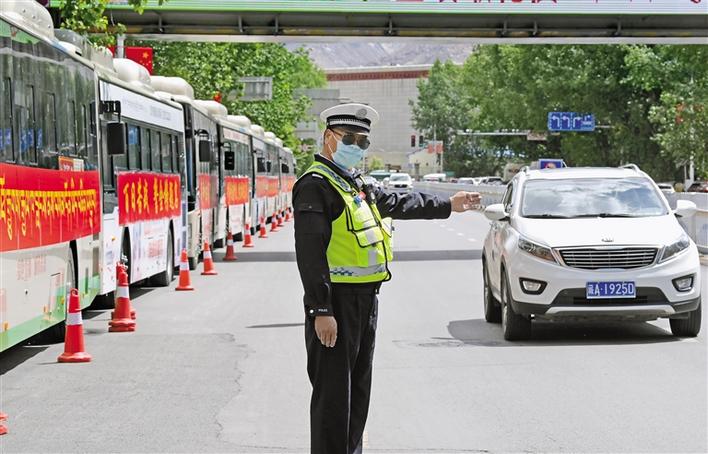 圖為(wei) 交警在考點外疏導交通秩序。記者 洛桑 次旺 次仁平措 攝