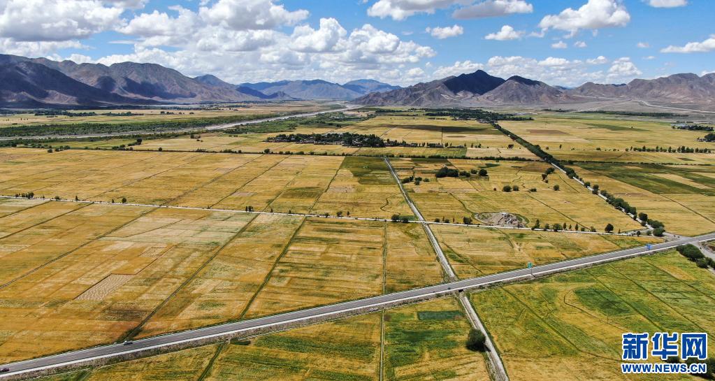 俯瞰西藏日喀則市白朗縣的農(nong) 田(2019年8月31日攝,無人機照片)。新華社記者 晉美多吉 攝