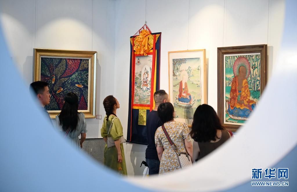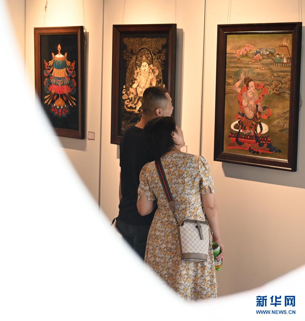 6月12日,市民在福州三坊七巷參觀唐卡漆畫。新華社記者 林善傳(chuan) 攝
