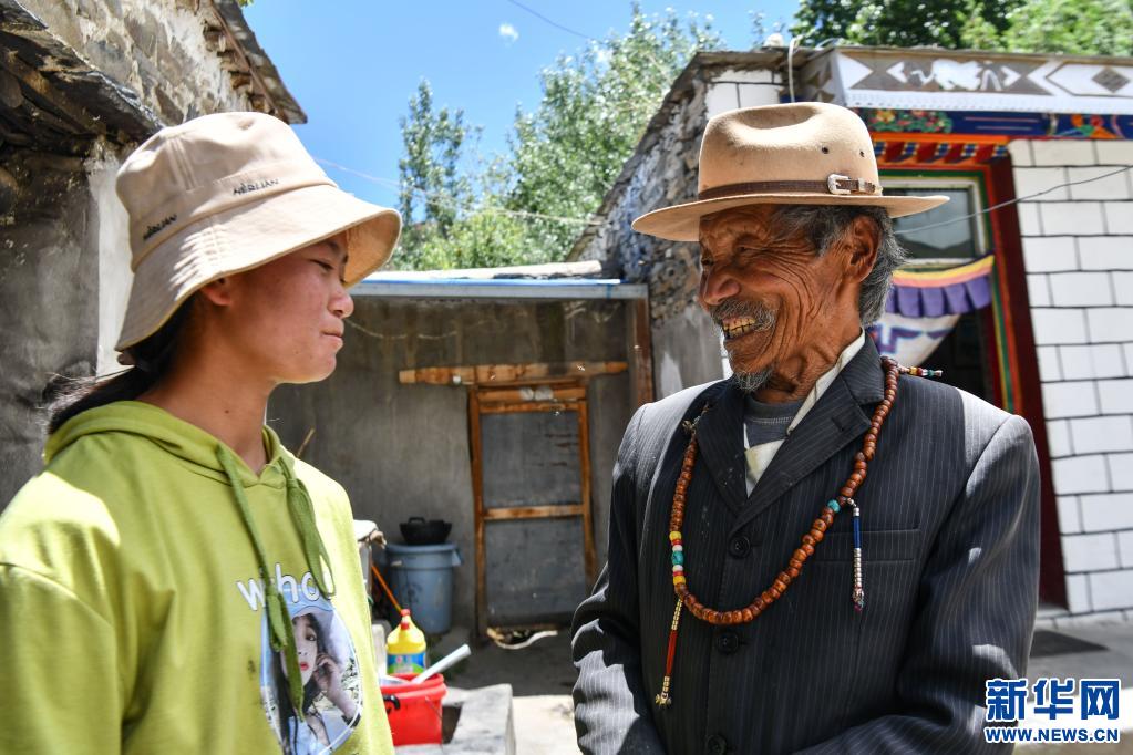 朗傑多吉和孫女在一起(6月5日攝)。新華社記者 晉美多吉 攝