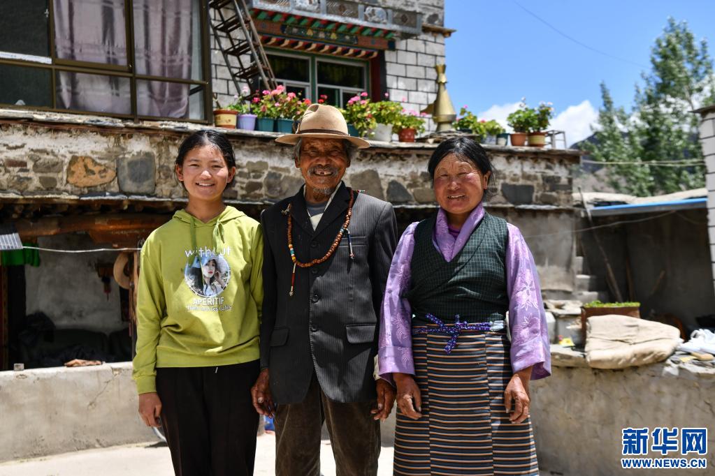 朗傑多吉(中)和家人合影(6月5日攝)。新華社記者 晉美多吉 攝