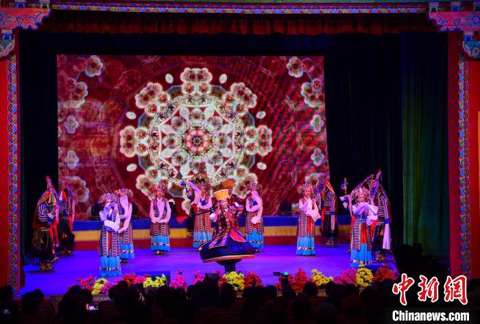 圖為(wei) 拉薩市城關(guan) 區娘熱民間藝術團帶來的歌舞《拉薩囊瑪》 貢嘎來鬆 攝