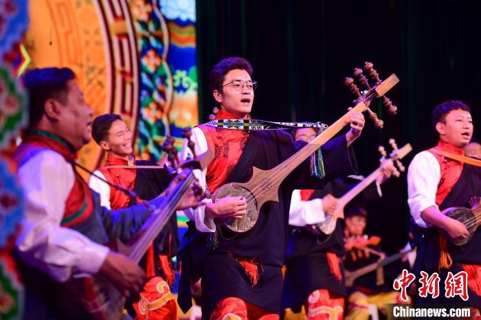圖為(wei) 西藏大學藝術學院音樂(le) 係帶來的紮念彈唱《普伊桑林貢巴》。 貢嘎來鬆 攝