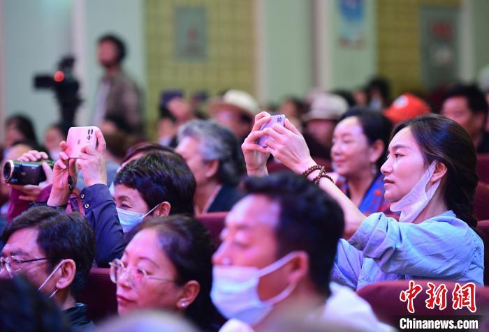 圖為(wei) 場觀眾(zhong) 正在用手機拍攝西藏非遺演出。 貢嘎來鬆 攝