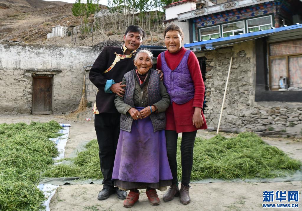 次仁央宗老人和兒(er) 子、女兒(er) 的合影(6月3日攝)。新華社記者 晉美多吉 攝