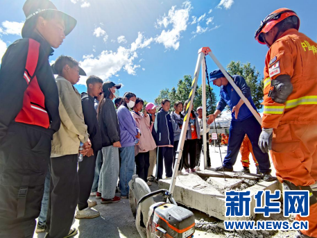 西藏自治區兒(er) 童福利院的孩子們(men) 到西藏森林消防總隊訓練大隊觀摩地震救援展示(6月14日攝)。甄小龍攝