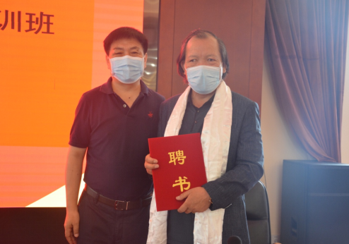 北京藏醫院院長仲格嘉(左)向明珠(右)頒發聘書(shu) ,聘請明珠為(wei) 北京藏醫院藏藥浴專(zhuan) 題培訓班授課老師。
