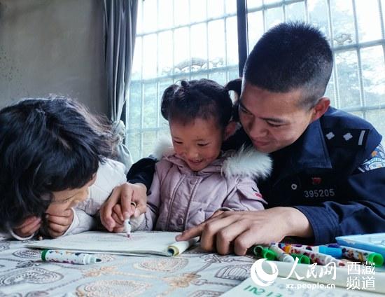 旺姆一家6口,是在2019年搬遷到這裏的。初來乍到,他們(men) 在生活上多少有些不習(xi) 慣。了解到這一情況後,沈朋和其他民警開始了上門服務工作。從(cong) 此,旺姆和哥哥姐姐有了穿不完的衣服鞋子,也有了一個(ge) 貼心輔導功課的警察叔叔。