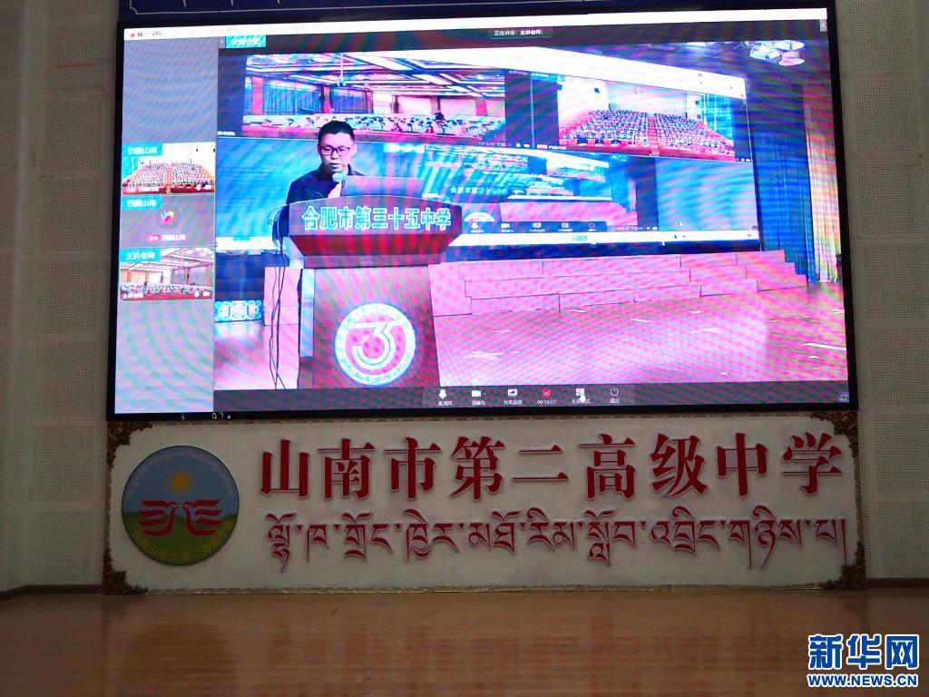 西藏山南市第二高級中學的學生坐在階梯教室中,屏幕的另一端是安徽省合肥市第三十五中學的同學們(men) 。借助網絡傳(chuan) 輸技術,皖藏兩(liang) 地實現思政課教學資源跨越上千公裏的互聯共享,創新了思政課的形式。