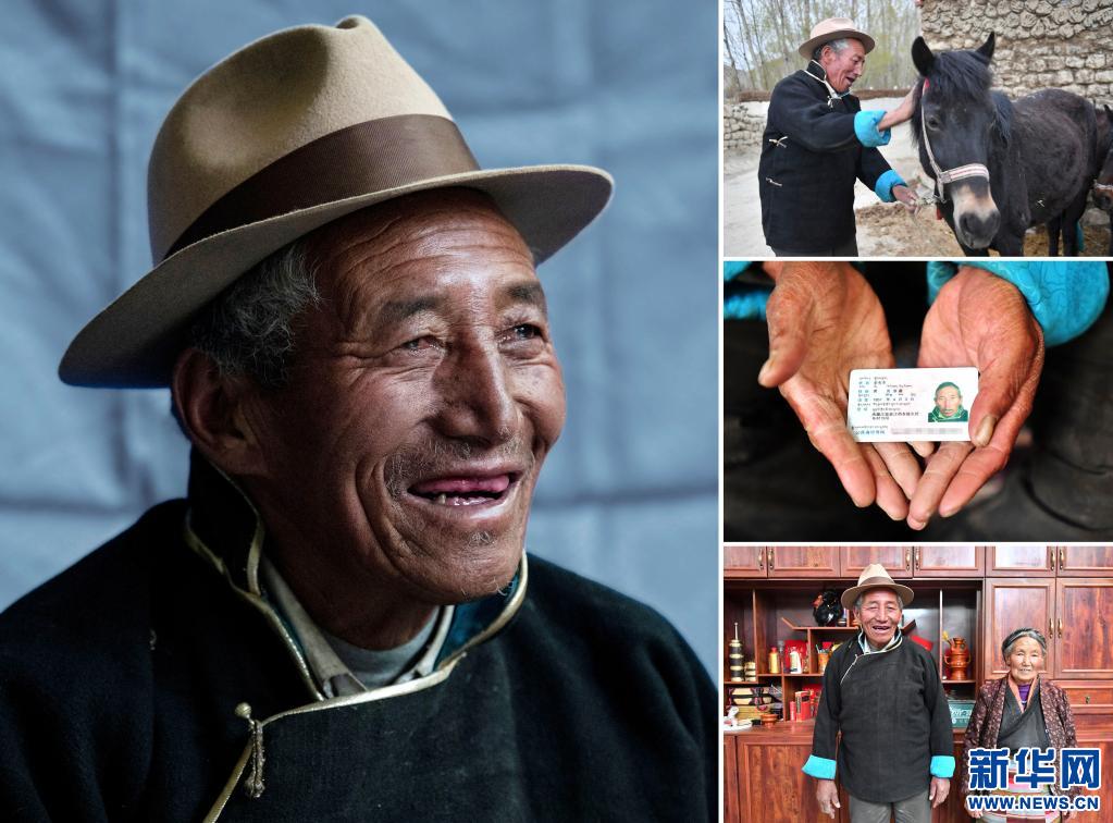 右中:斯曲老人的身份證(4月15日新華社記者覺果攝)。