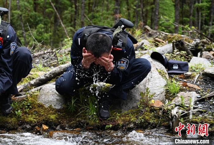 圖為(wei) 移民管理警察在溪邊休息洗臉。趙朗 攝