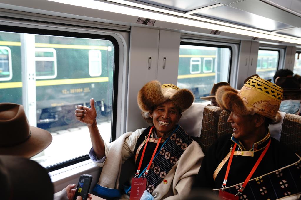 6月25日,群眾(zhong) 代表乘坐拉林鐵路動車組首發車。新華社記者 劉洪明 攝