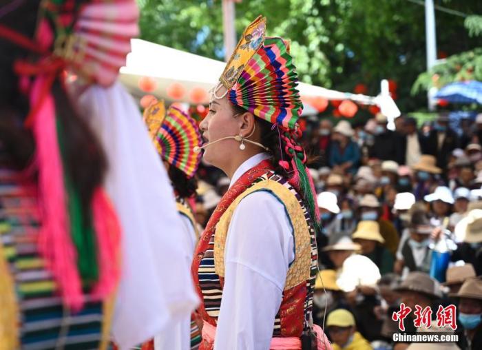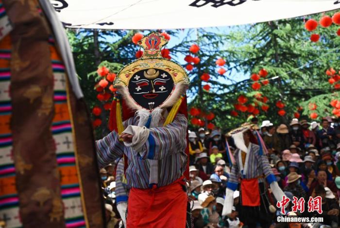 圖為(wei) 6月26日,拉薩城關(guan) 區次角林藏戲隊演員正在進行表演。中新社記者 趙朗 攝