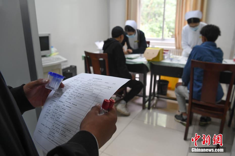 圖為(wei) 參加定向培養(yang) 士官體(ti) 格檢查的學生正在進行血常規檢查。 貢嘎來鬆 攝