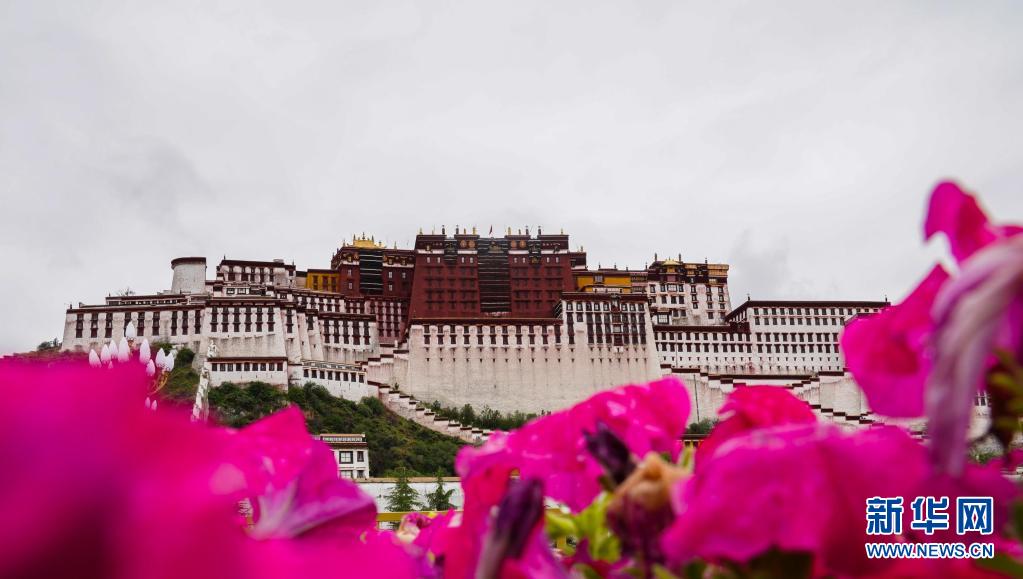這是鮮花掩映下的布達拉宮(2018年7月22日攝)。新華社記者 晉美多吉 攝
