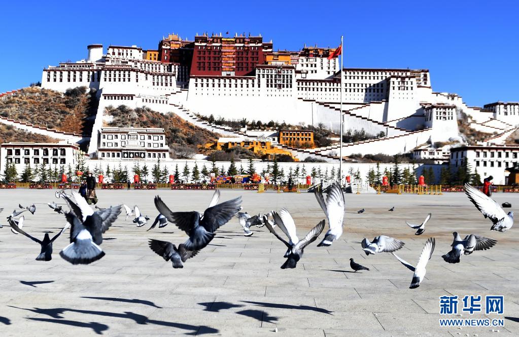 這是布達拉宮廣場上的鴿子(2018年3月4日攝)。新華社記者 覺果 攝