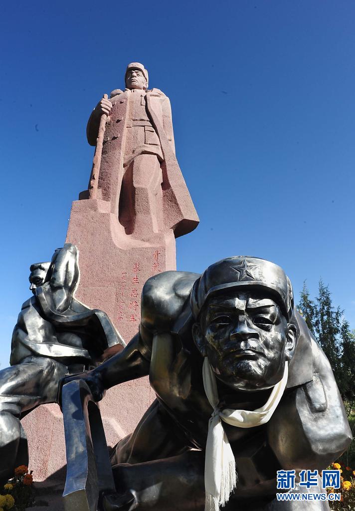 矗立在青海省格爾木市將軍(jun) 樓公園內(nei) 的慕生忠雕像(2014年9月23日攝)。新華社記者 王頌 攝