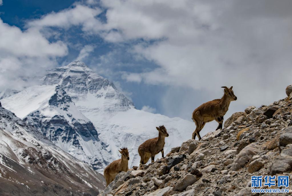 棲息在珠峰國家級自然保護區內(nei) 的岩羊。(新華社記者 普布紮西 攝)