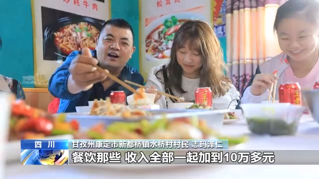 甘孜州康定市新都橋鎮水橋村村民 誌瑪澤仁:我有八間房,一間房子80元,一天有三百四百吧,餐飲那些,全部一起加起來10萬(wan) 多。以前窮得很,旅遊的(人)多,318線離我們(men) 近得很,現在富起來了。